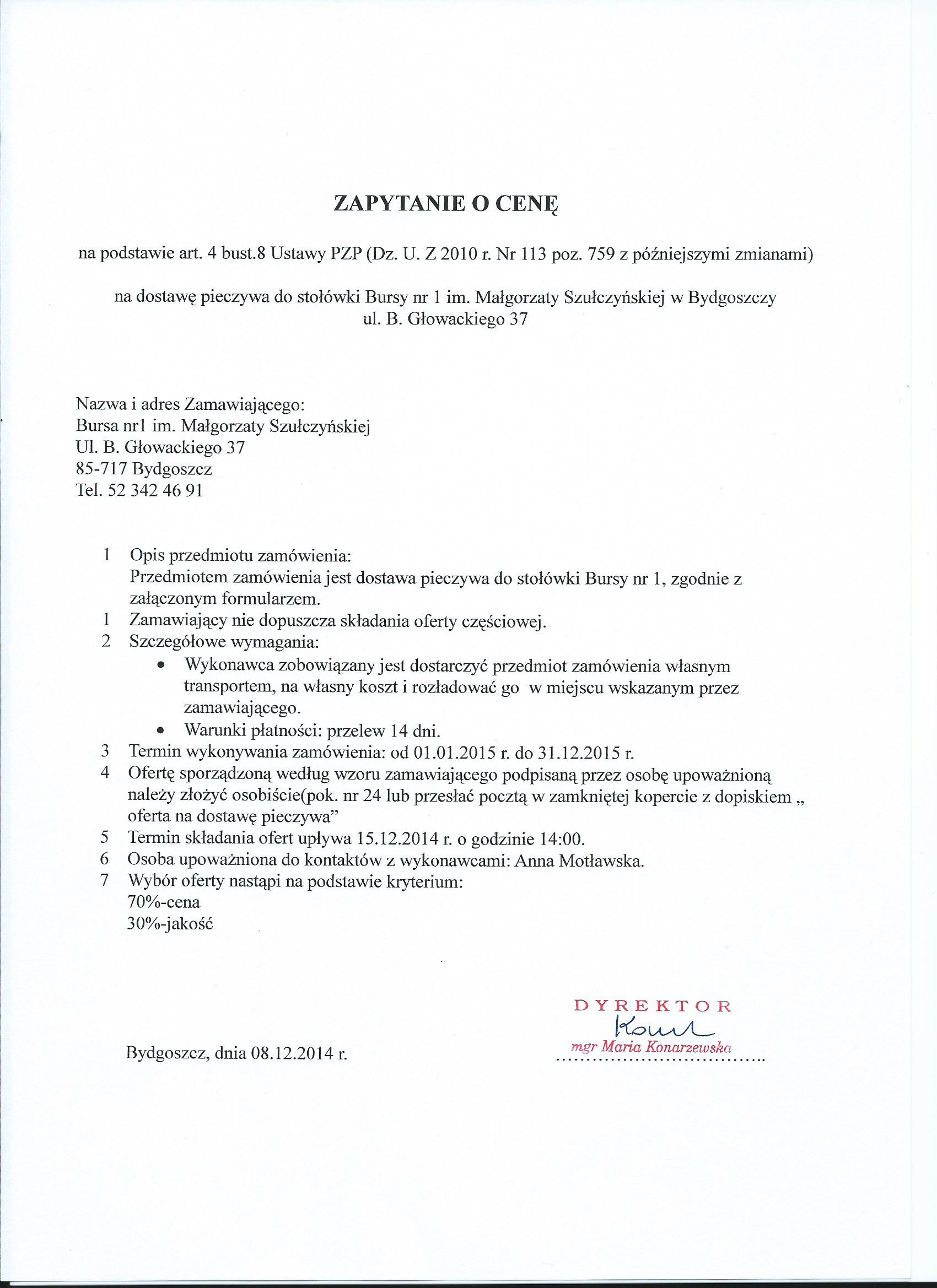 Wybrana została firma: Gminna Spółdzielnia "Samopomoc Chłopska", ul. Dworcowa 8/1, 86-120 Pruszcz