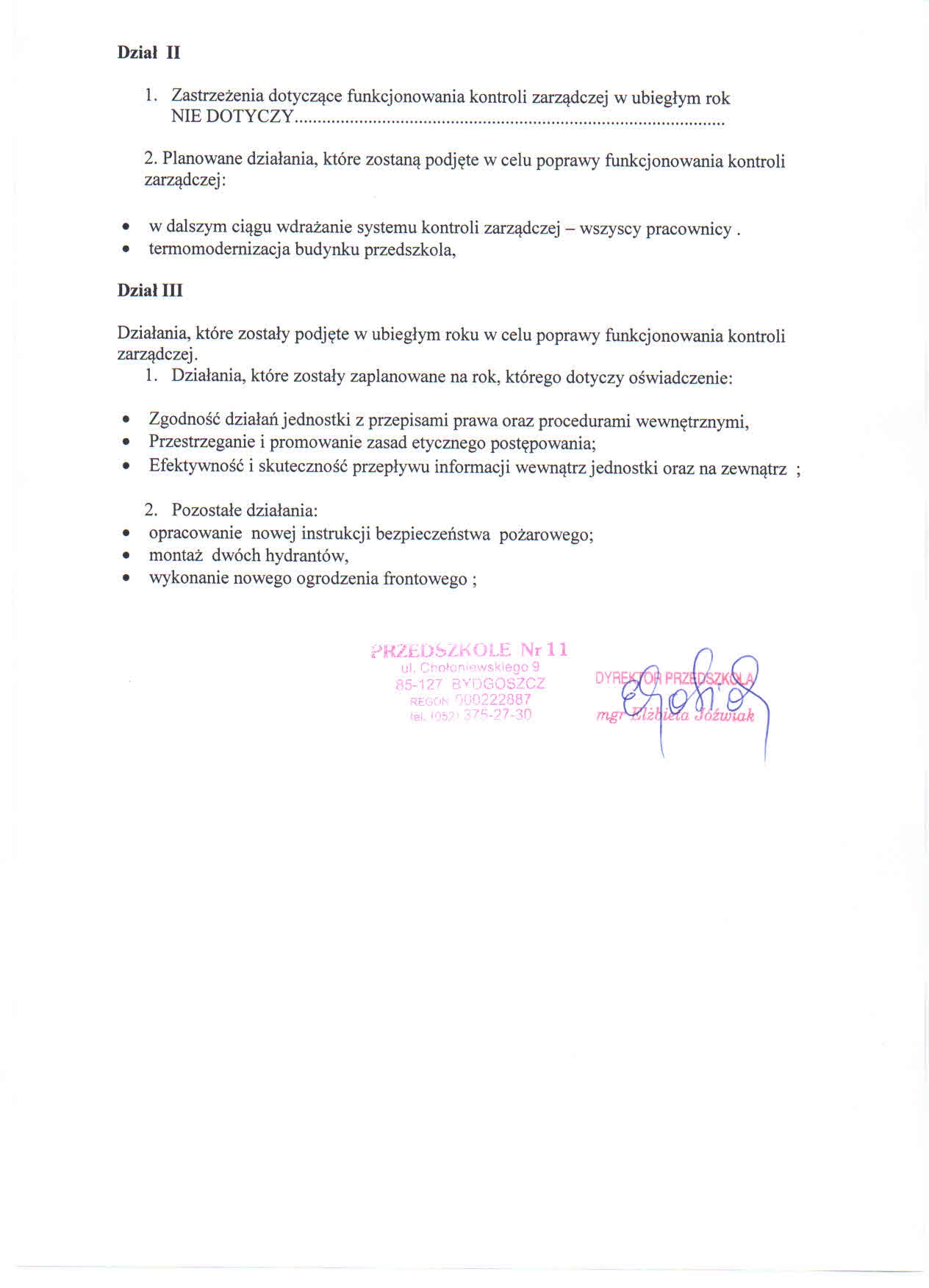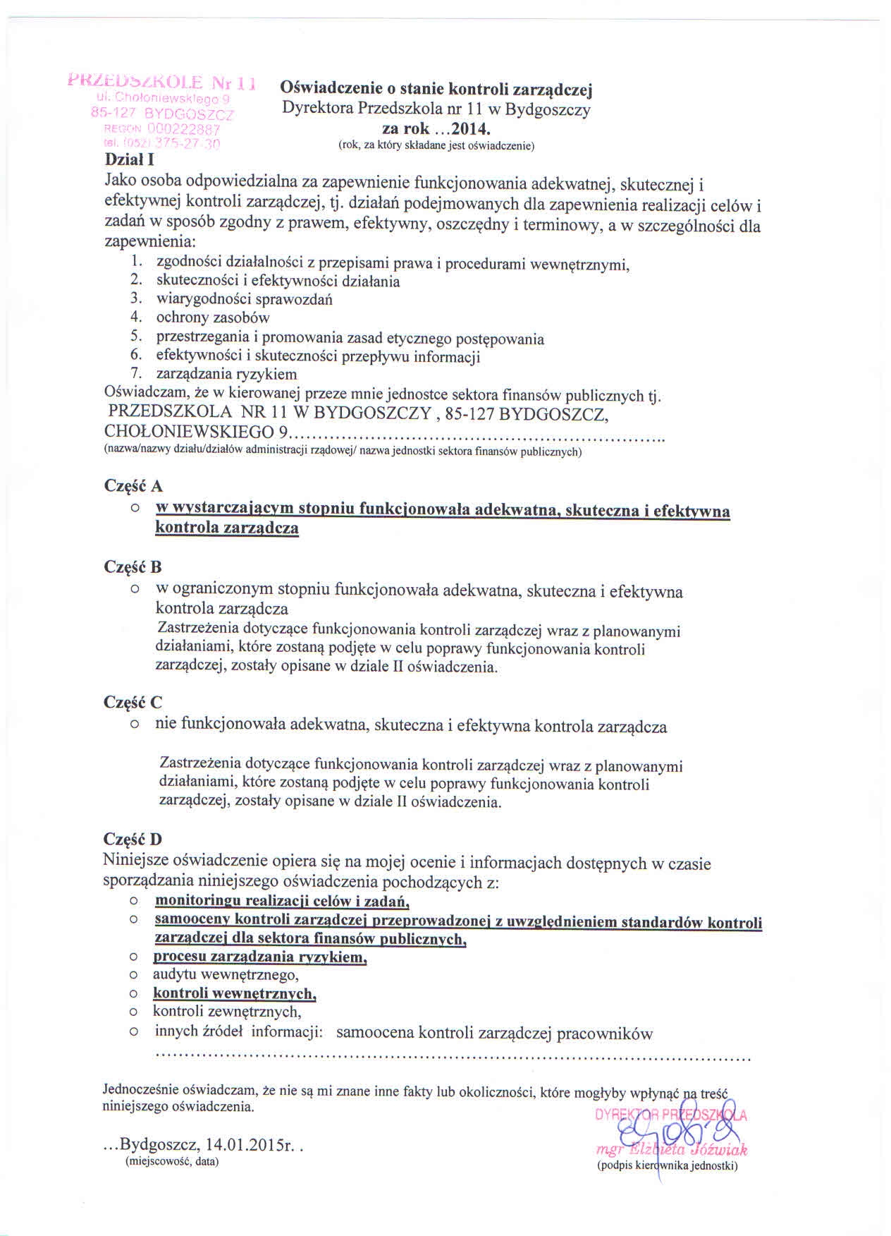 oswiadczenie dyrektora ostanie kontroli zarządczej