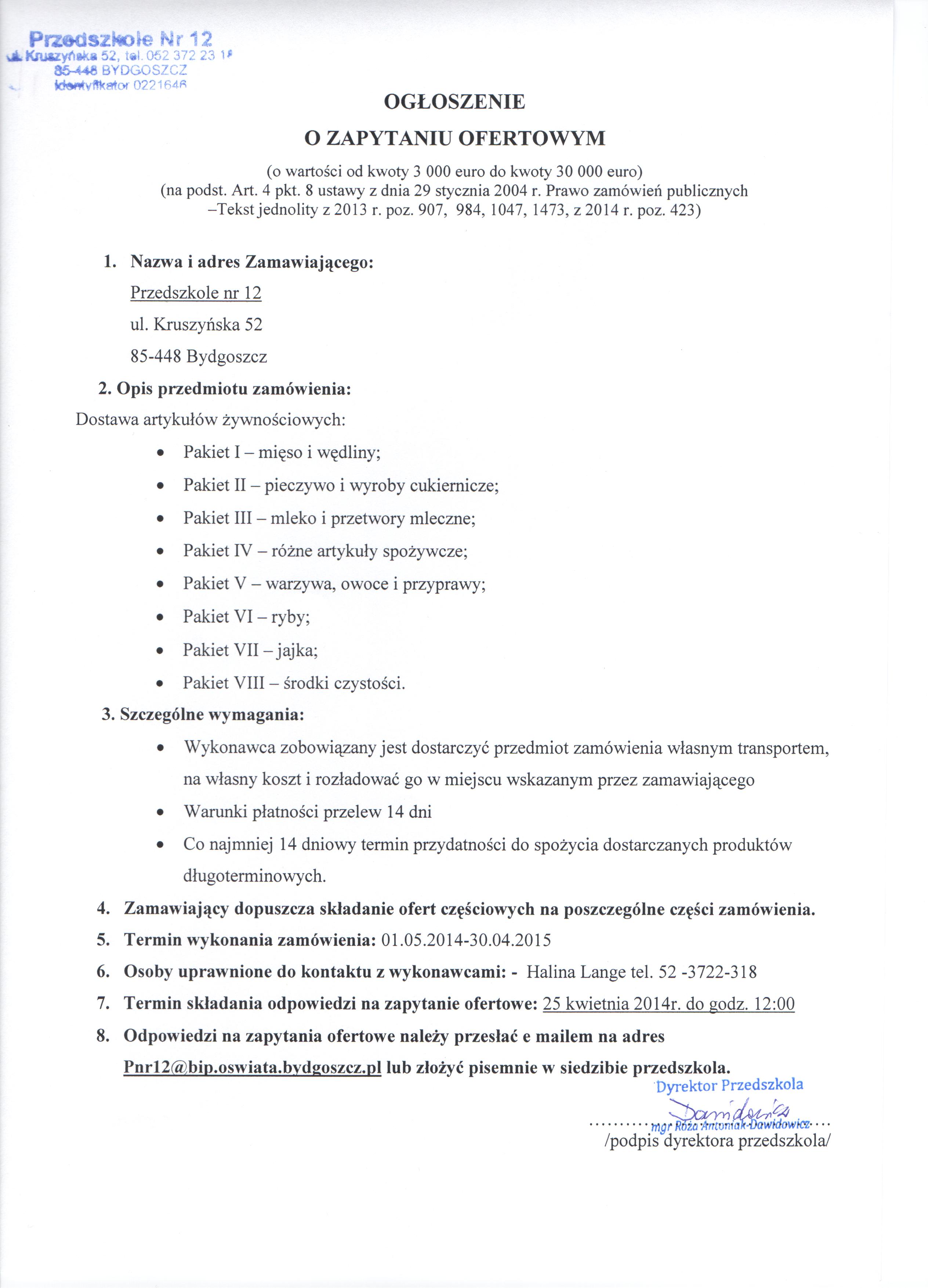 Wyniki postępowania wprowadzono w Informacji o wyborze.