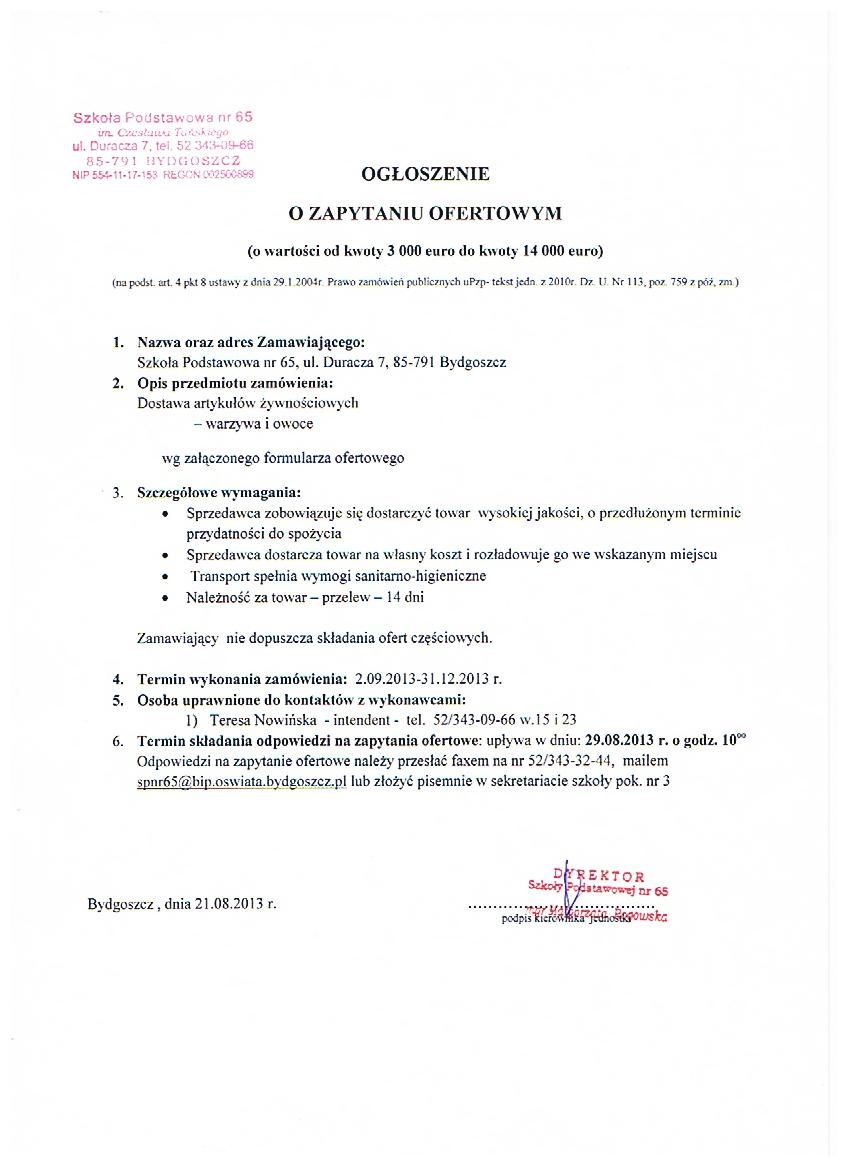 Przedsiębiorstwo Wielobranżowe Renata Cydzik 85-796 Bydgoszcz, ul. Bielawskiego 1/52