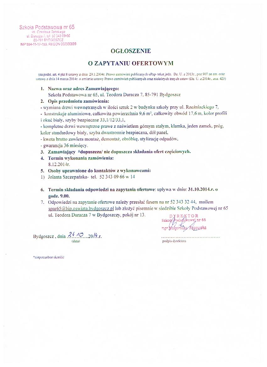 Ogłoszenie o zapytaniu ofertowym