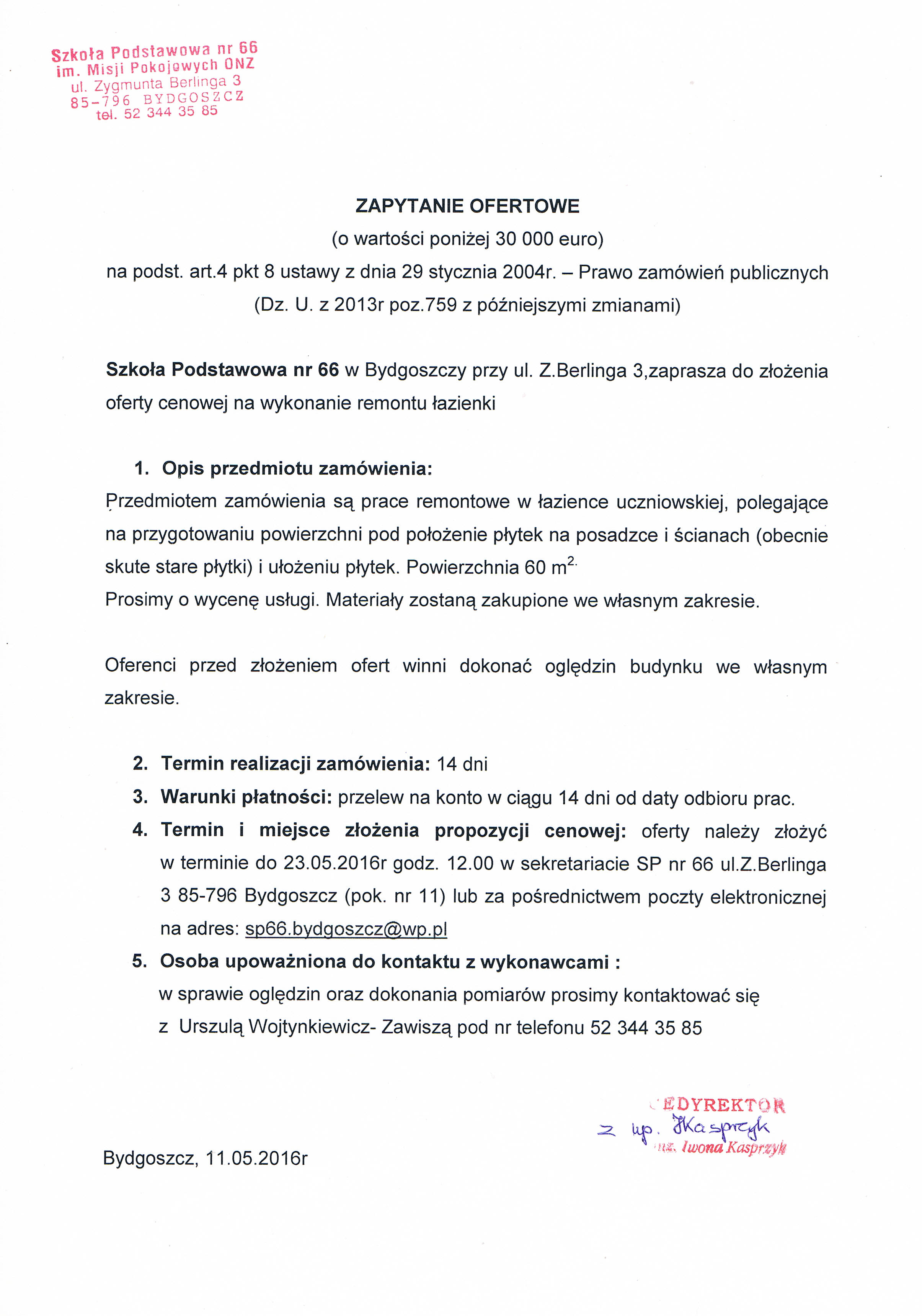 złożenie oferty cenowej na remont łazienki uczniowskiej