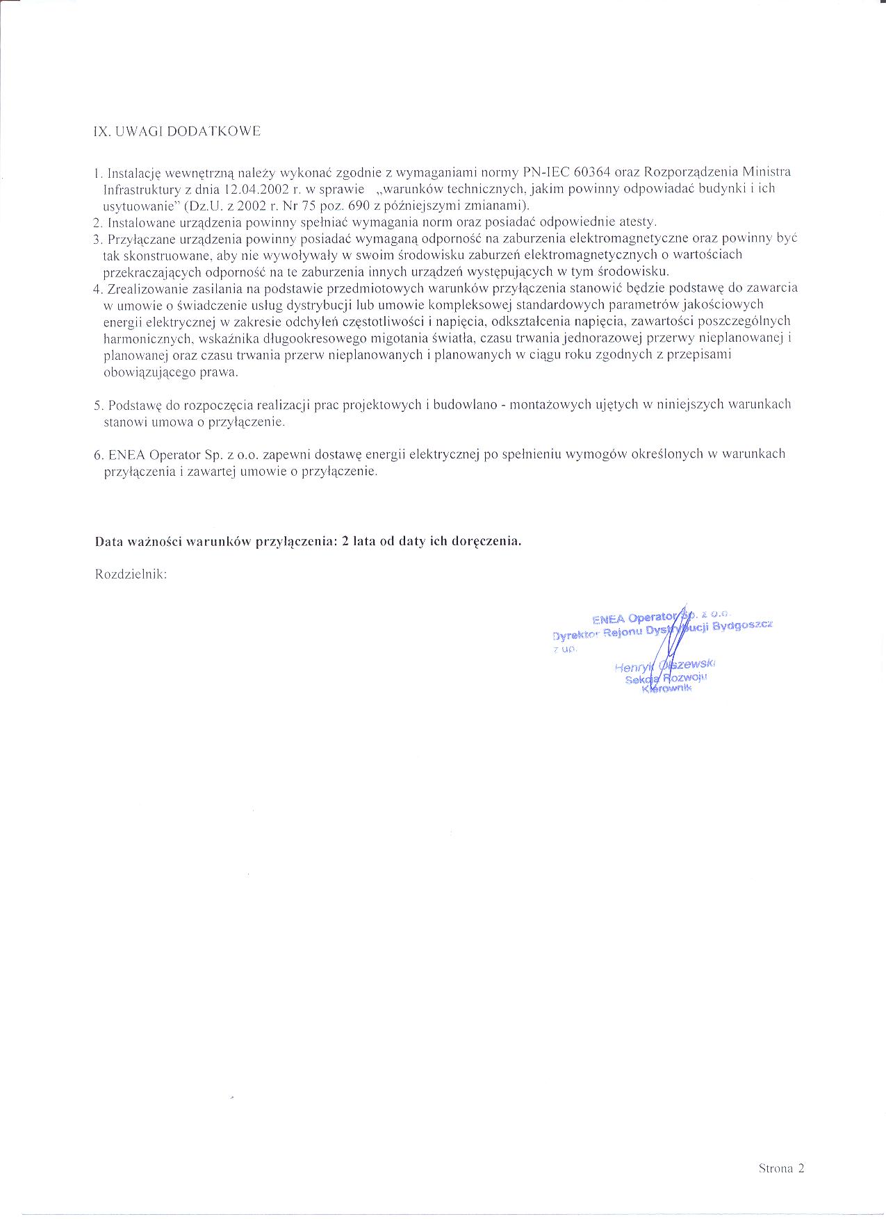 warunkami przedstawionymi przez ENEA Operator Sp. z o.o. (pismo