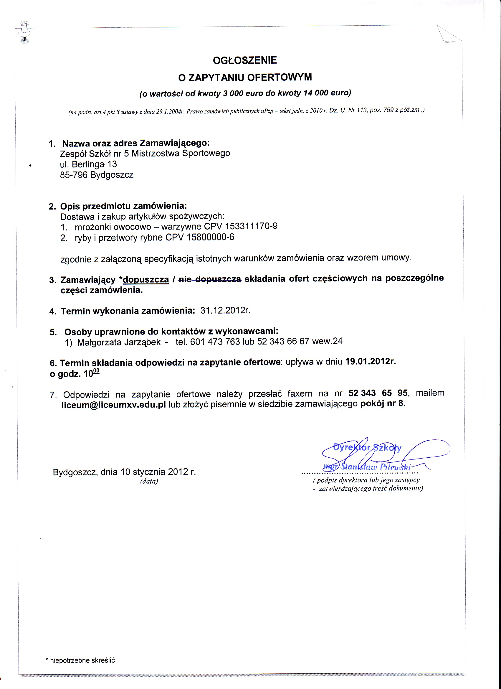 ogłoszenie o zapytaniu ofertowym