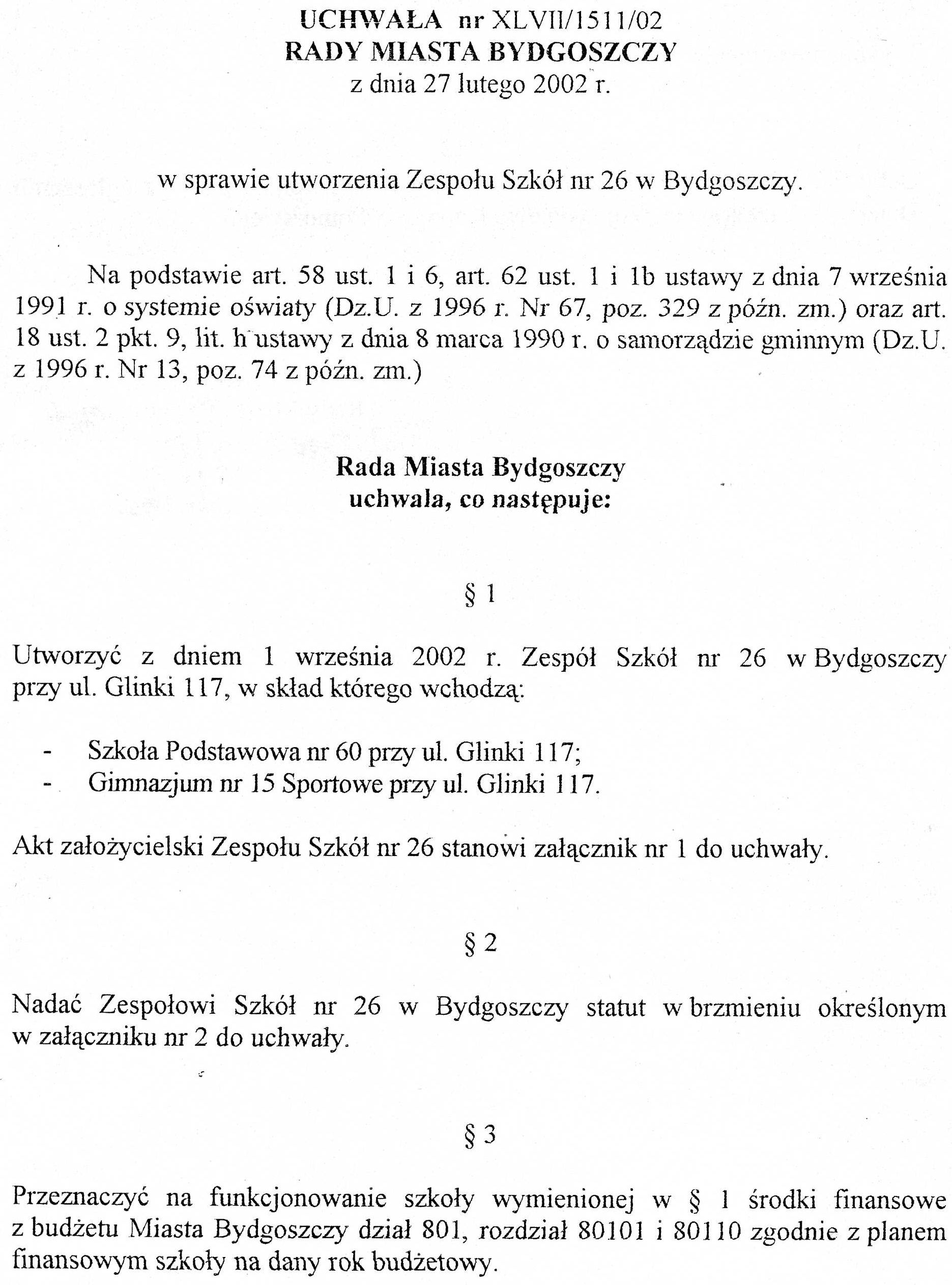Statut Zespołu Szkół nr 26