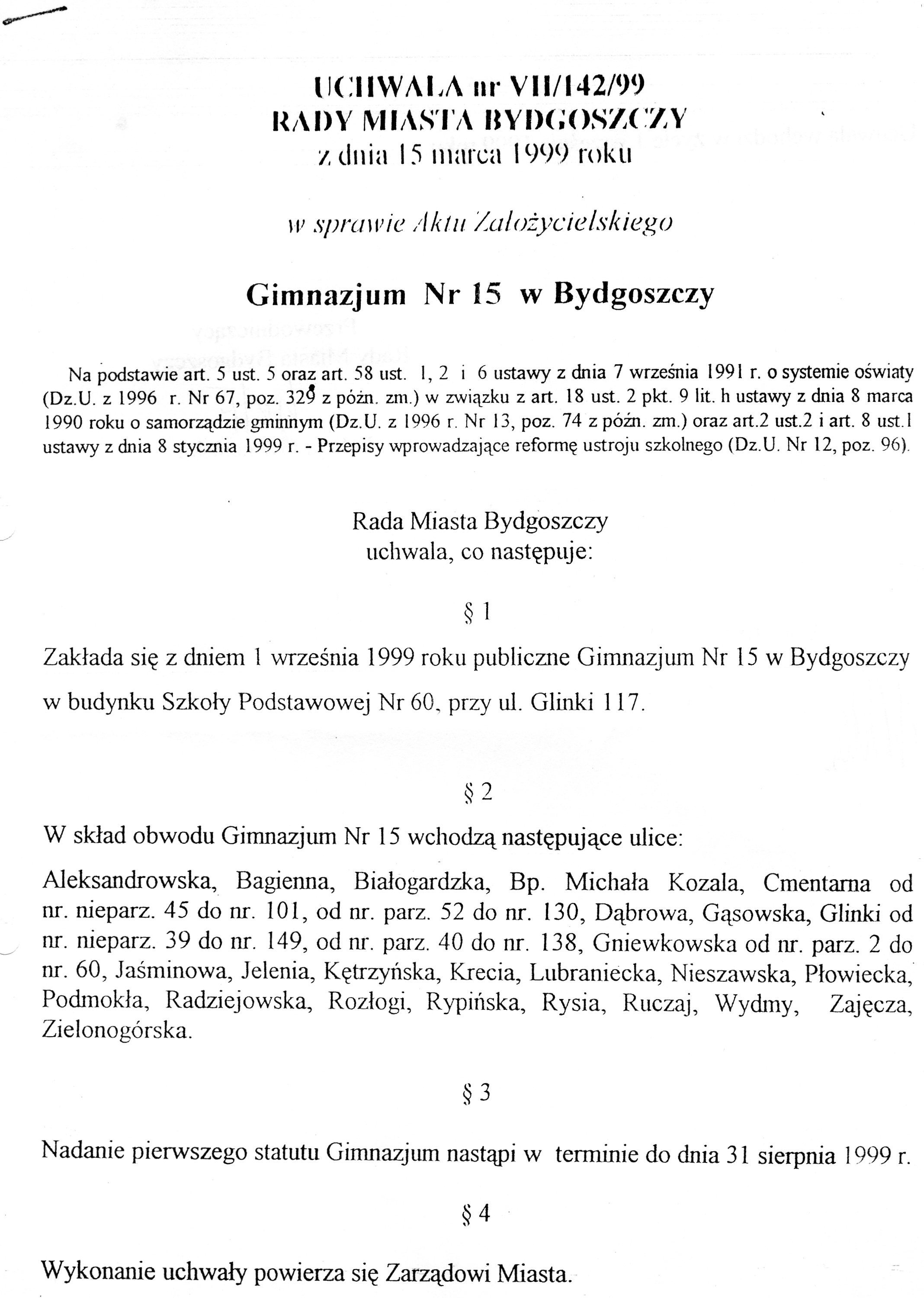 Statu Gimnazjum nr 15 Sportowego