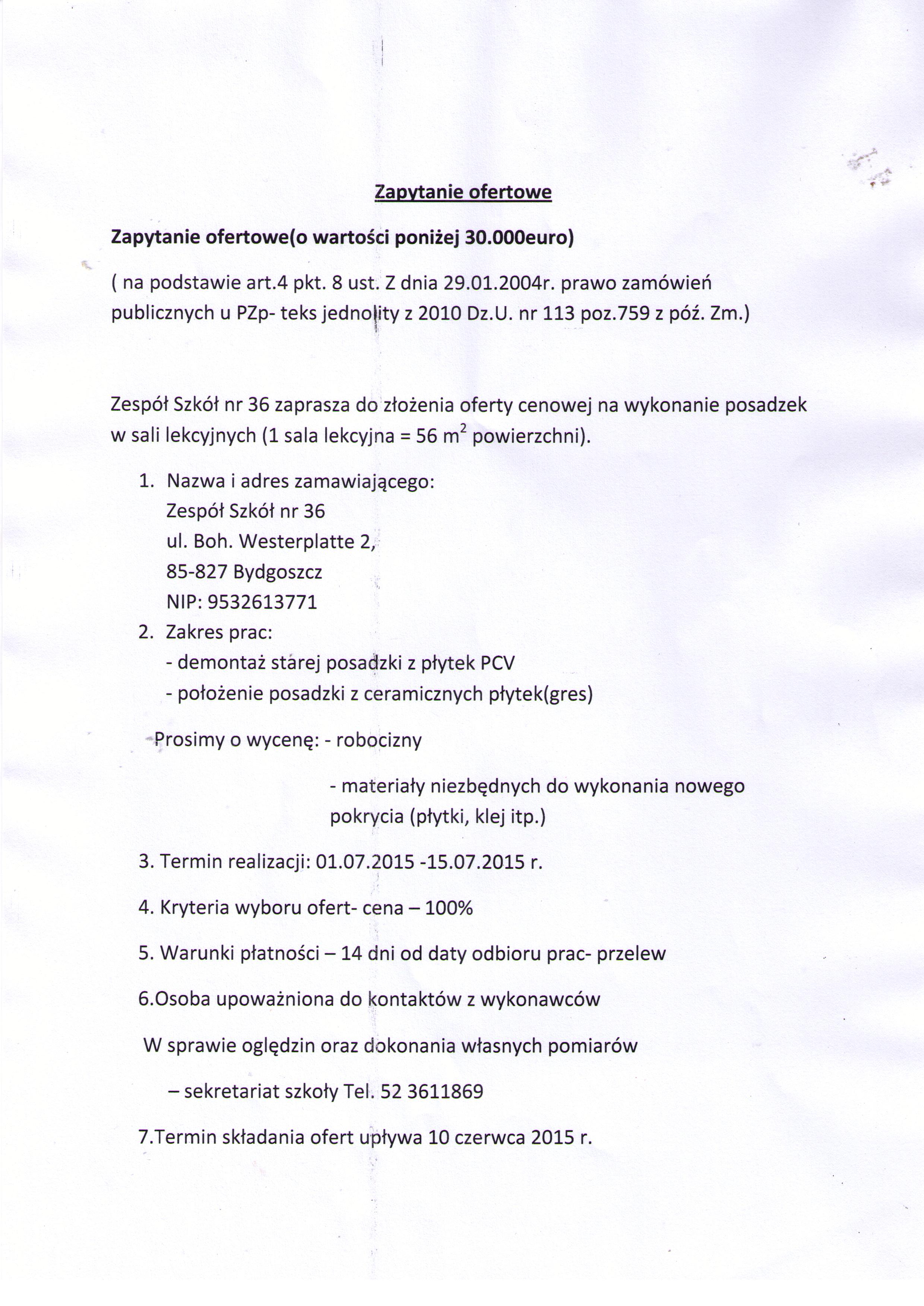 Złożenie ofert cenowej na wykonanie posadzki w sali lekcyjnej.
