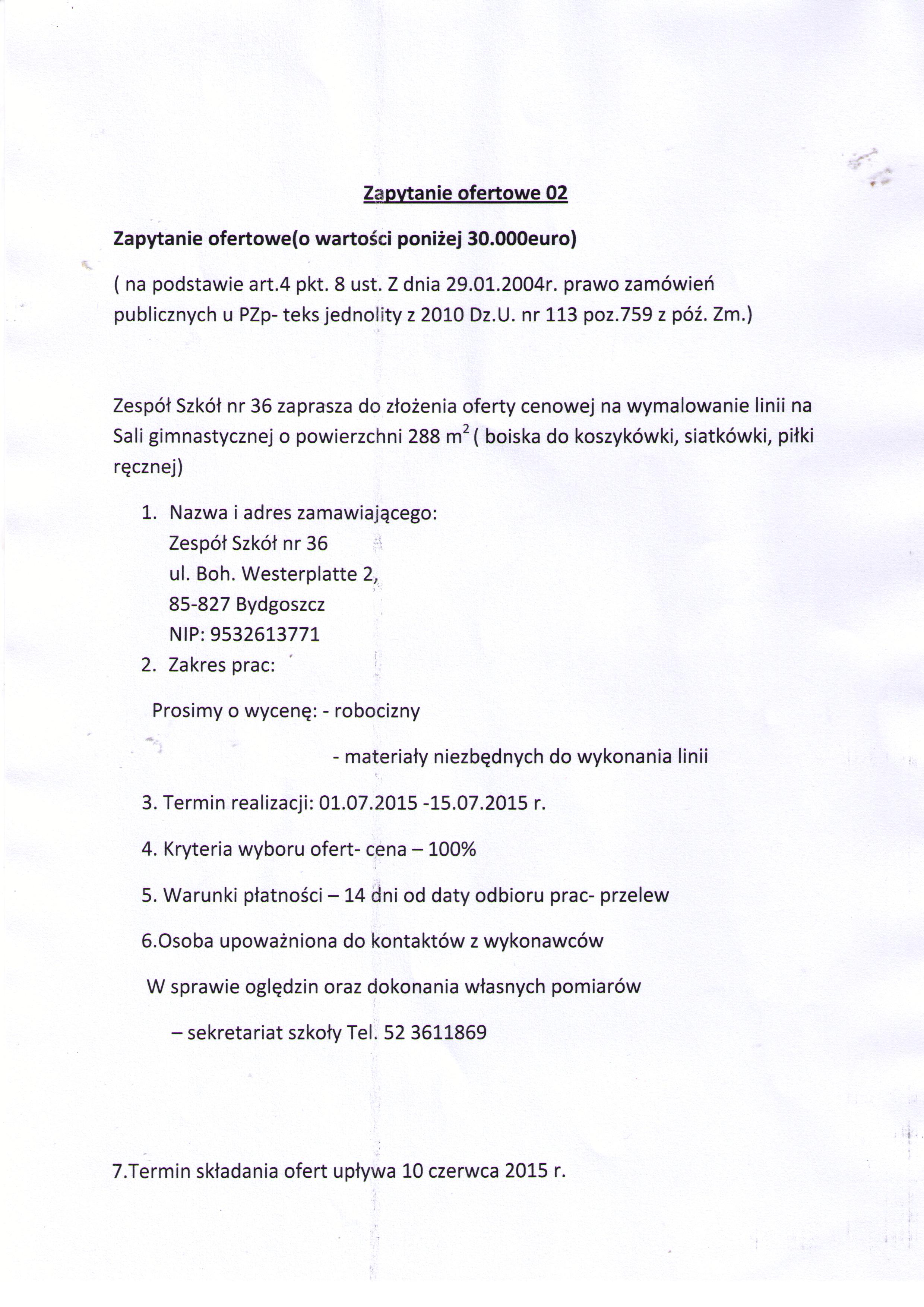 Złożenie oferty cenowej na wymalowanie na sali gimnastycznej linii