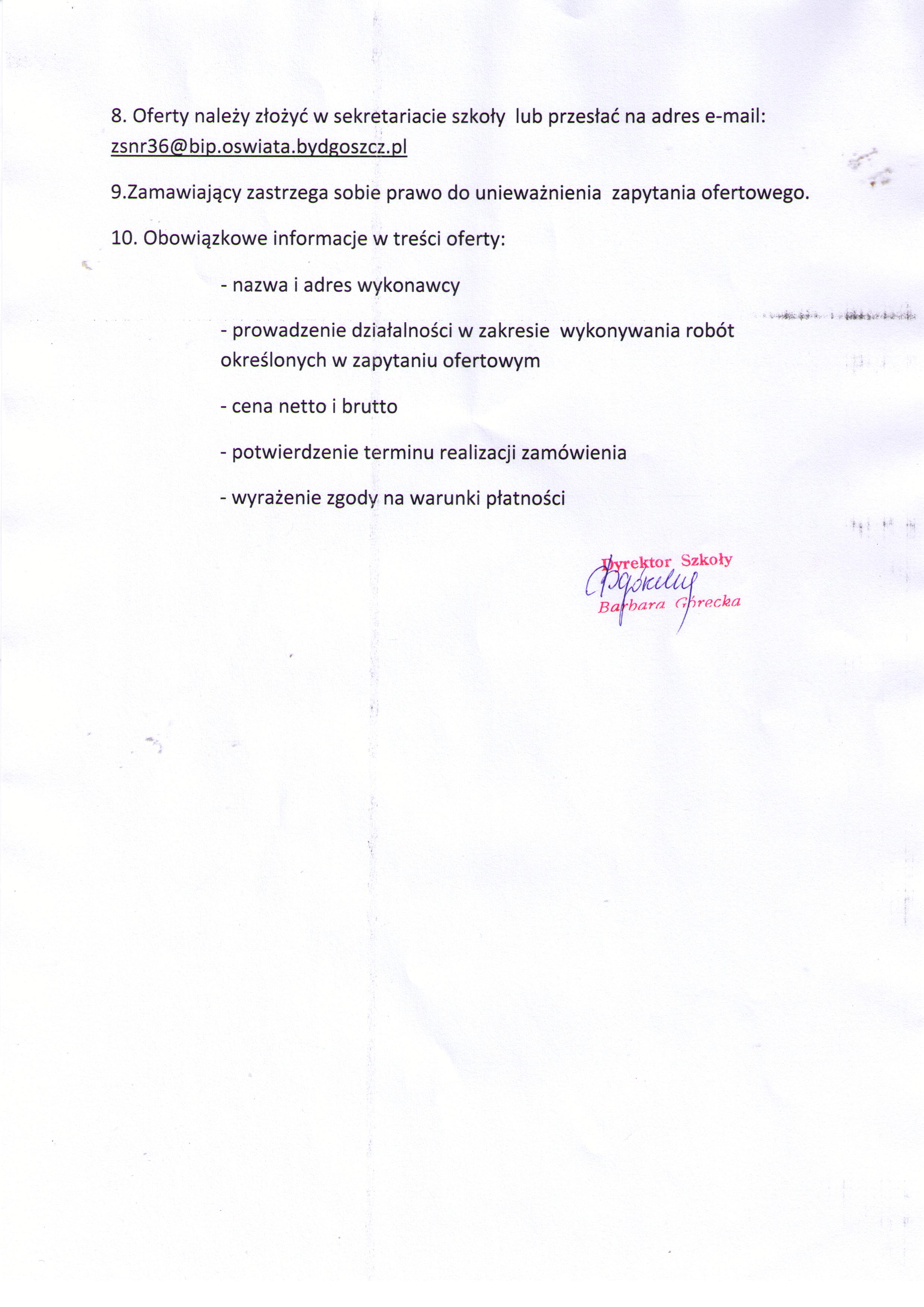 Dyrektot Zespołu Szkół nr 36 w Bydgoszczy