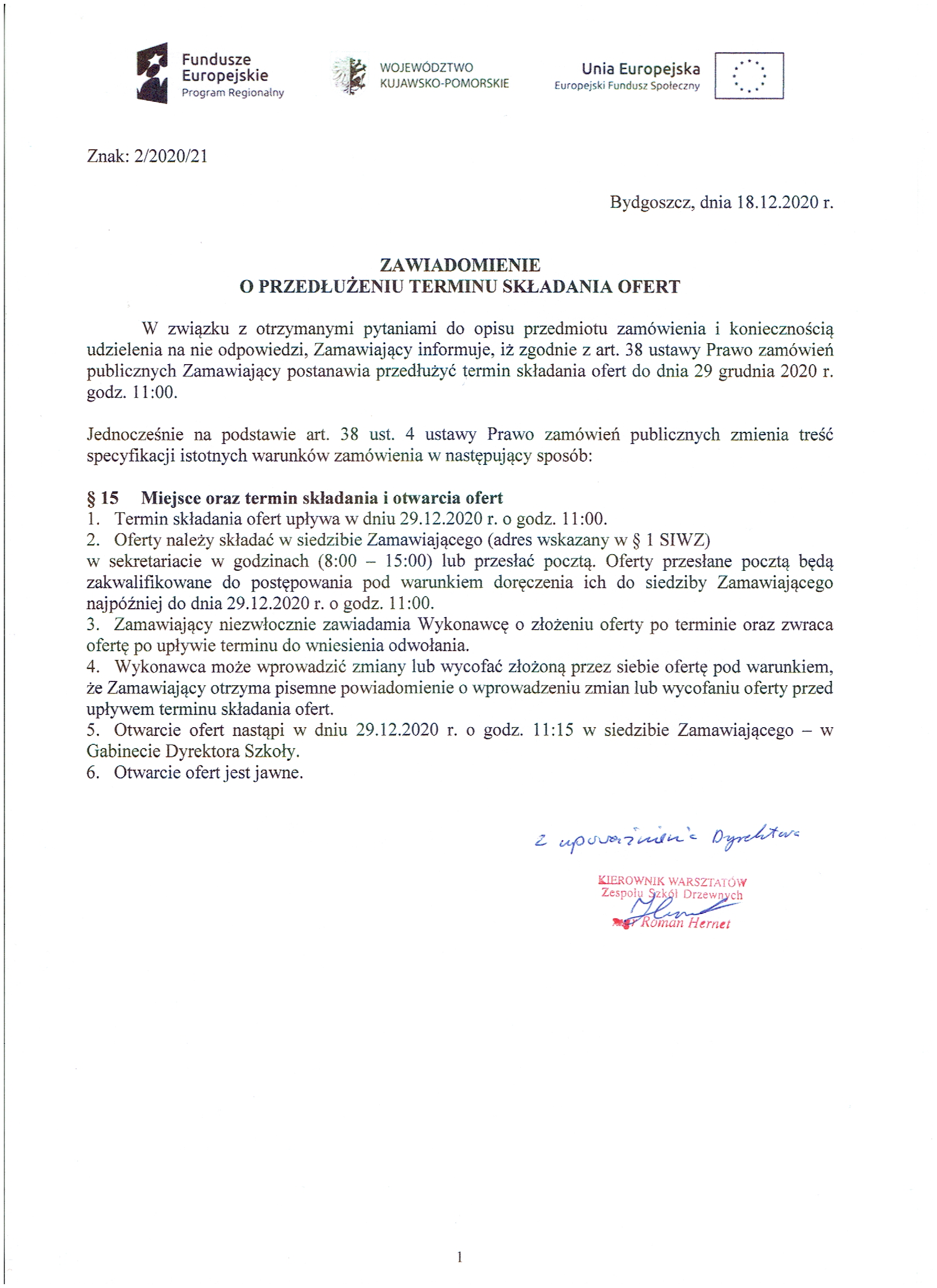 Informacja o wyborze ofert umieszczona w załączniku "Informacja o wyborze ofert 25_01_2021"