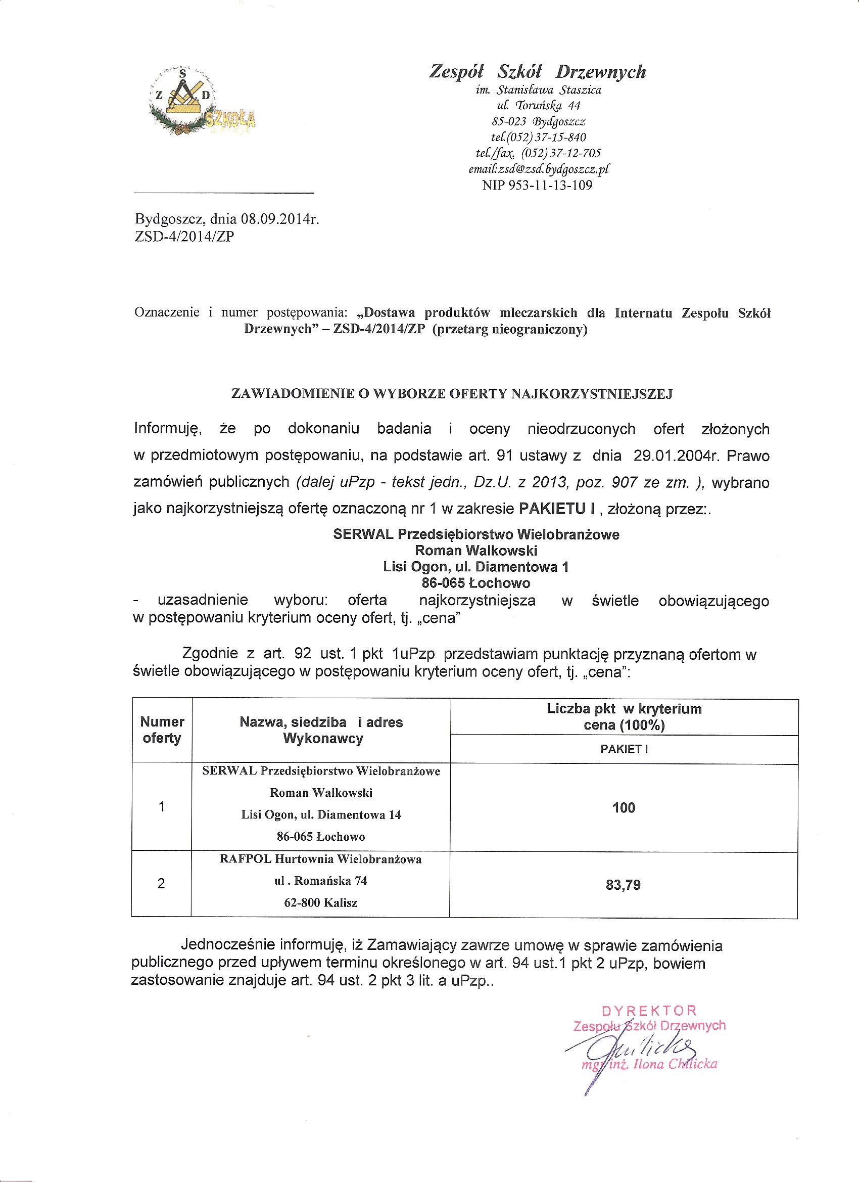 Zespół Szkół DrzewnychOGŁASZA PRZETARG