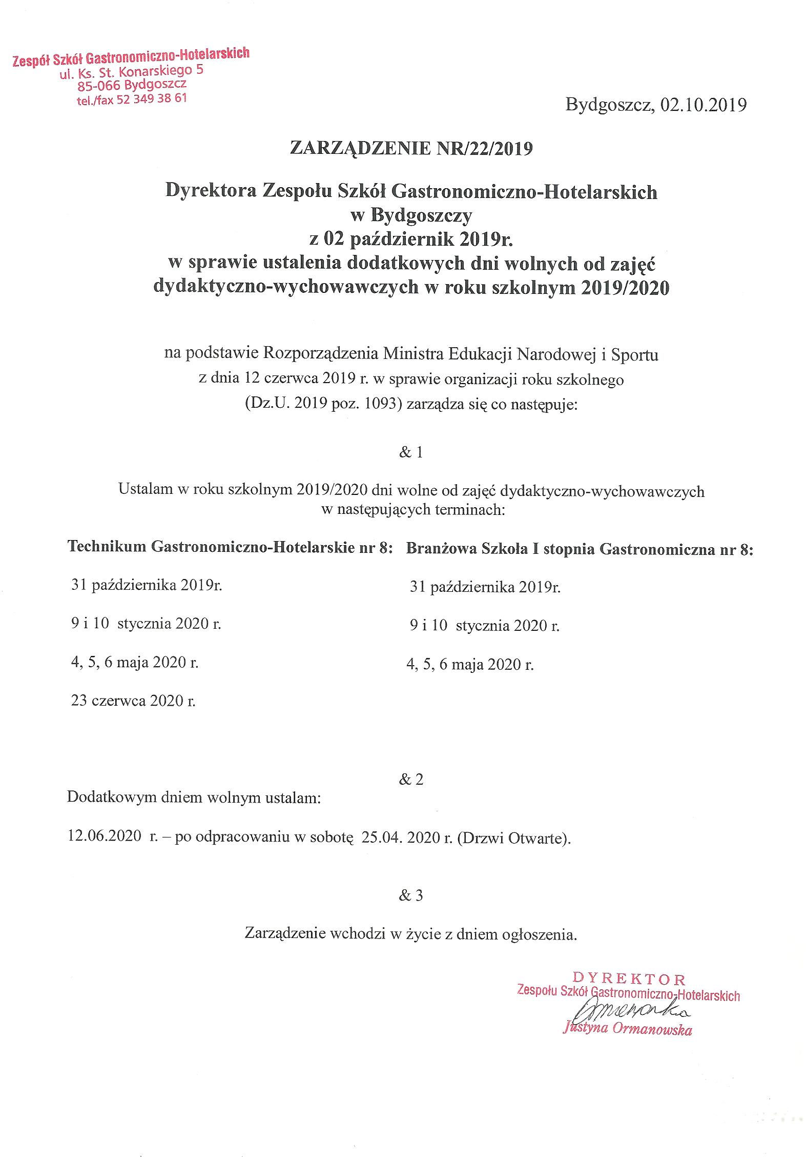 Dodatkowe dni wolne w roku szkolnym 2019-2020