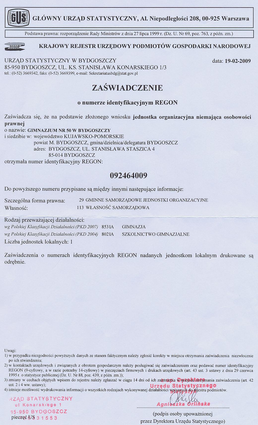 Statut Gimnazjum nr 50 w Bydgoszczy